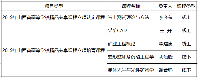 2019年山西省高等学校精品共享课程