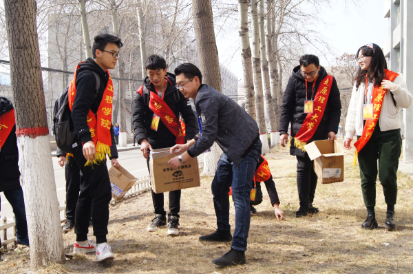 本次活动共分为三个部分:(一) 倾听英雄精神,弘扬雷锋精神。通过条幅、海报、展板,组织同学们参与联名签名纪念活动。(二) 旧物的春天。在校园内收集废旧衣物,经过统一整理和清洁消毒,将物资捐予晋中市咱家养老院。(三)服务美好校园,共建舒适环境。对虎峪校区草坪、绿化区域进行清洁打扫,为建设良好的校园环境贡献出力量。