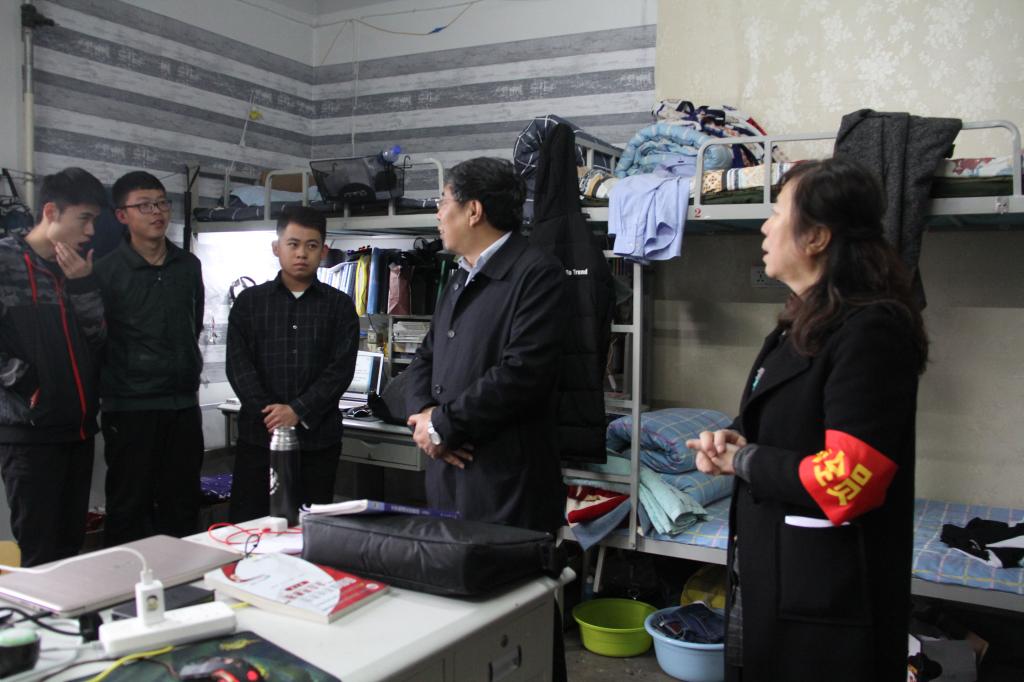 4月9日下午,以校学生工作部部长郝根彦为组长,保卫处施宏科长,公寓中心刘玉花为成员的校安全工作检查组莅临beat365官网学生宿舍进行安全专项督导。学院党委副书记、学工办主任、全体辅导员随同检查。