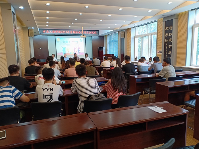 7月4日下午,beat365平台唯一官网2019年暑期社会实践出征仪式在采矿楼二层会议室举行。学院党委书记薛武杰、党委副书记武佐君、团委副书记刘安,社会实践指导教师代表付翔、李大成、洪俊、石婷出席了会议,参加会议的还有全体暑期社会实践队队长和队员代表。出征仪式由团委书记张丁香主持。