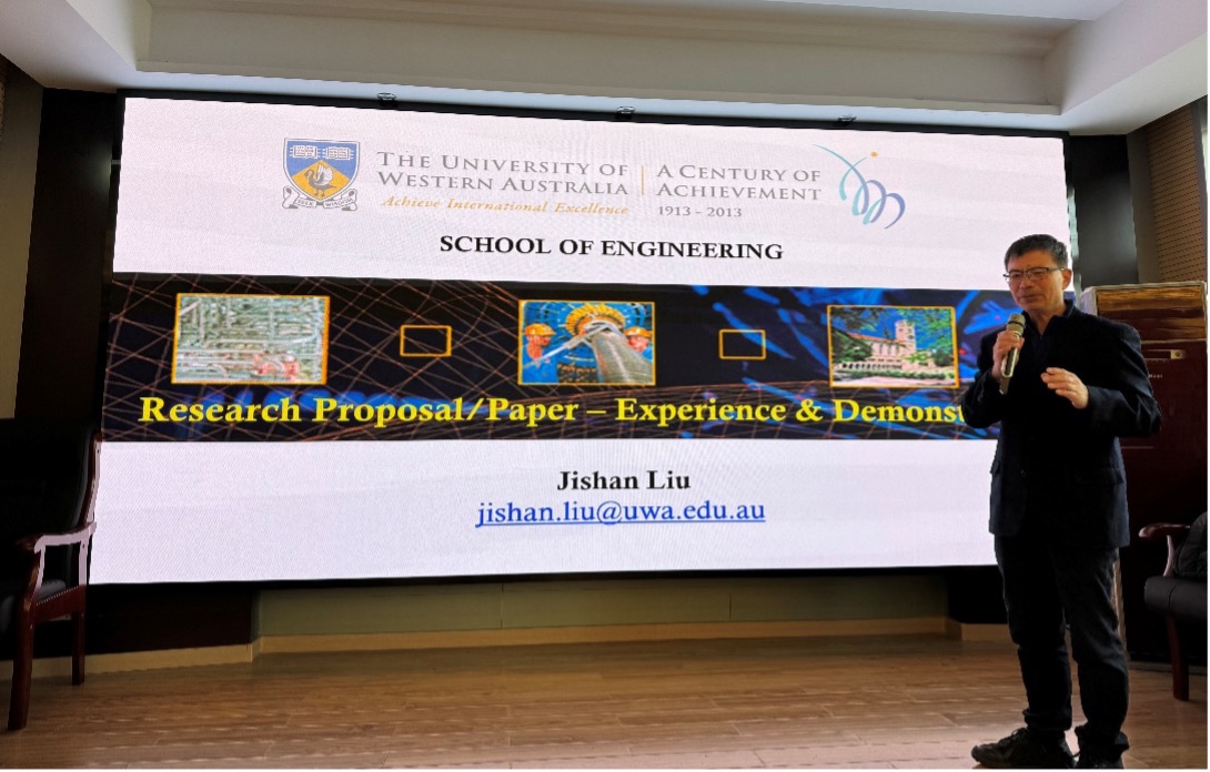 2025年11月26日,澳大利亚西澳大学刘继山教授应邀来beat365官网进行访问交流,并做题为“Research Proposal and Publication: Experience and Demonstration”的专题报告。报告会由副院长冯子军教授主持,学院教师、研究生及部分高年级本科生100多人参加了此次活动。