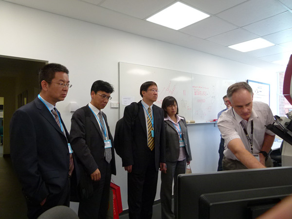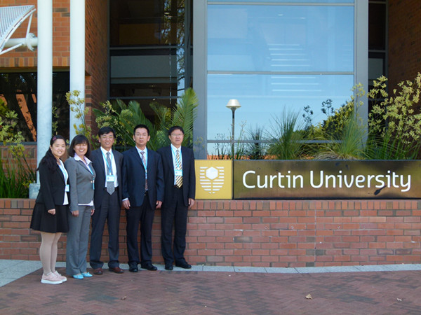 澳大利亚科廷大学建于1967年,是澳大利亚西海岸规模最大的综合性大学,是澳洲最早为海外特别是东南亚地区学生提供国际教育的大学,现有在校学生40000名,25%为国际留学生。主要院系有科学与工程学院、商学院、健康科学学院等。11日代表团对该校进行了为期一天的访问交流,校长吕明教授首先与副校长Grame Wright教授互致欢迎与问候,之后在我校杰出校友李春柱教授导引下参观了地学与材料物理实验室、建筑信息技术中心、生物质能源实验室。吕明校长与科廷大学校长Derorah Terry教授进行了校际框架合作备忘录签字仪式。梁卫国院长与科廷大学科学与工程学部副部长Andris Stelbovics教授、科学及工程学院国际事务副院长Syde Islam教授就地质工程、矿业工程、测绘工程、安全工程等几个专业本科生以2+2或2.5+2模式联合培养、研究生选派、教师交流访问等问题进行了详尽交流。