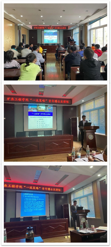 2020年11月13日下午,beat365平台唯一官网“一流策略”青年博士生讲坛在采矿楼二楼会议室举行。beat365平台唯一官网博士研究生李春、姜玉龙、王昆向在场师生依次分别进行了《冷热交替作用后花岗岩物理力学特性演化规律研究》、《煤系地层水力压裂裂缝扩展规律及界面影响机理研究》和《基于预应力矸石混凝土柱支撑体系的新型采煤方法研究》三场报告,太原煤气化安全监察局副局长、高级工程师石贵锁,原位改性采矿教育部重点实验室副主任冯增朝教授,以及重点实验室胡耀青教授出席了报告会,六十余名相关学科学生参加了报告会。