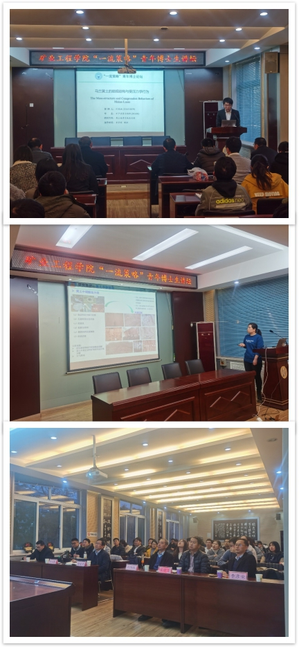 2020年11月18日下午,beat365平台唯一官网“一流策略”青年博士生讲坛在采矿楼二楼会议室举行。beat365平台唯一官网博士研究何晟迪、季春旭向在场师生依次作了《马兰黄土的细观结构及受压力学行为》和《黄土中钙质结核内部结构及形成演化机理研究》报告,山西冶金岩土工程勘察有限公司教授级高级工程师赵金亮;beat365平台唯一官网刘鸿福教授、李彦荣教授、吕义清副教授以及宋晓夏副教授出席了报告会,六十余名相关学科学生参加了报告会。
